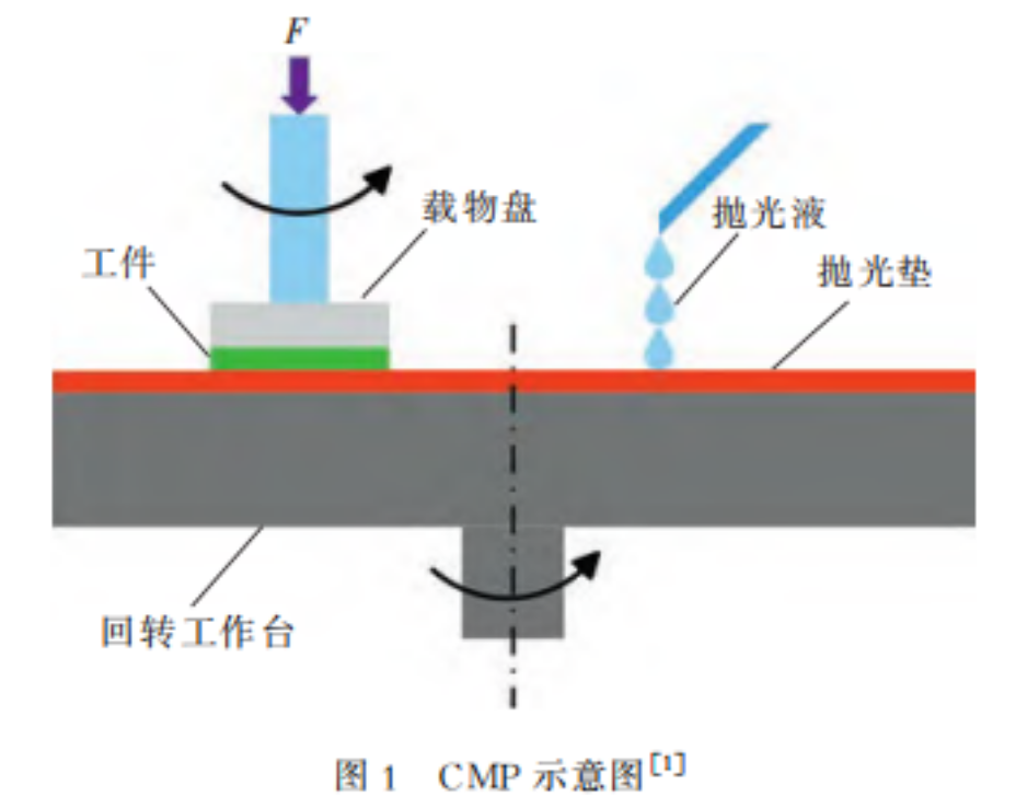 化學(xué)機(jī)械拋光(CMP)技術(shù)出現(xiàn)于20世紀(jì)中期,由于能夠同時(shí)對玻璃和金屬進(jìn)行平坦化,因而引起了人們的極大關(guān)注。CMP能夠同時(shí)實(shí)現(xiàn)全局和局部平坦化,所以在半導(dǎo)體晶圓制程中被廣泛使用。化學(xué)機(jī)械拋光后的工件表面具有超高的面形精度,表面粗糙度為亞納米級,表面超光滑無損傷。CMP技術(shù)已經(jīng)廣泛應(yīng)用在半導(dǎo)體工業(yè)、金屬材料等表面超精密加工中。